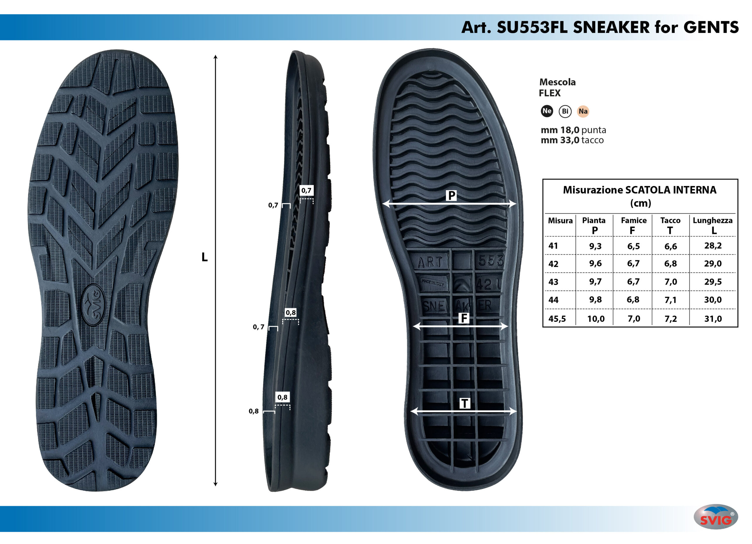 Suola ad incasso in gomma; flessibile, leggera e facilmente incollabile.