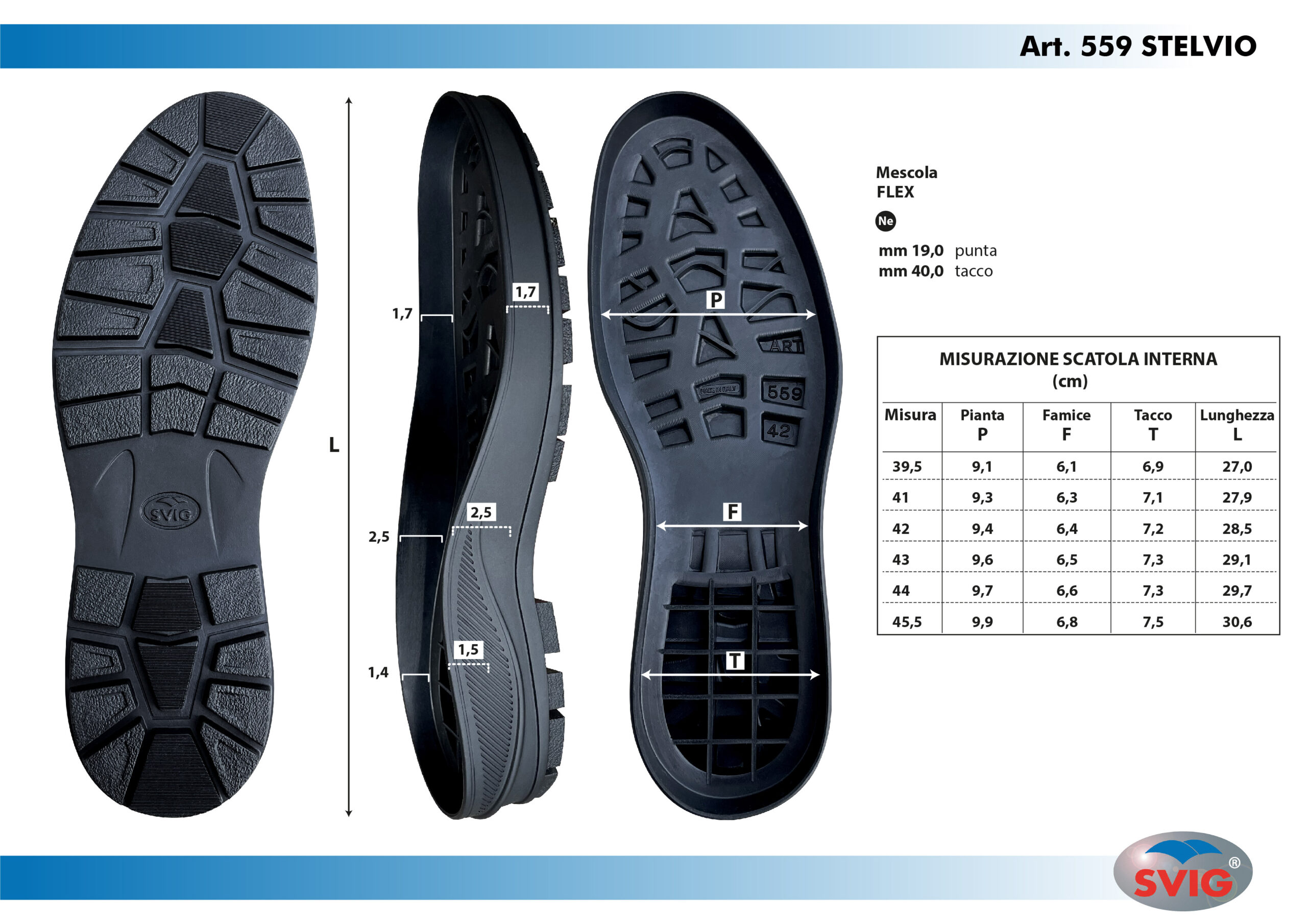 Spessore tacco: 40 mm Spessore punta: 19 mm
