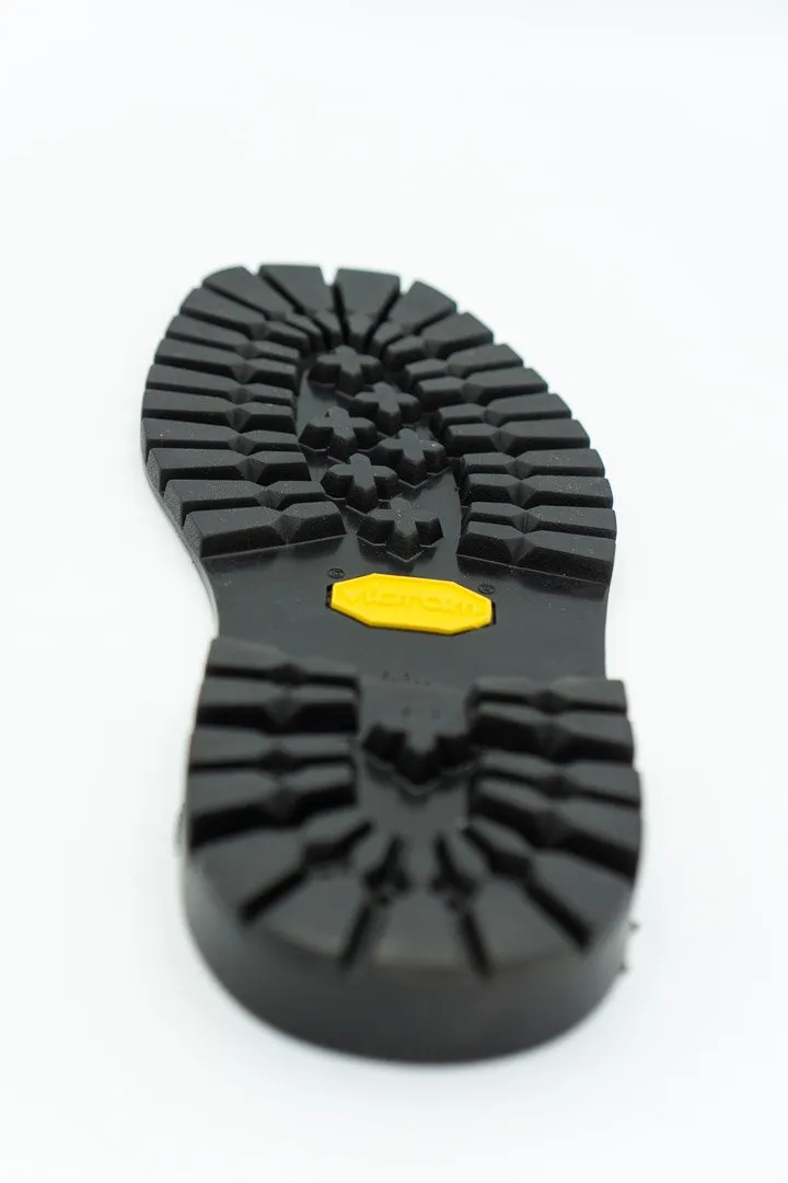 Suola montagna compatta classico disegno vibram, ottima resistenza all’ usura e elevato potere antiscivolo. Ideali per calzature da montagna con punta quadrata e tacco da mm.29. Materiale: gomma